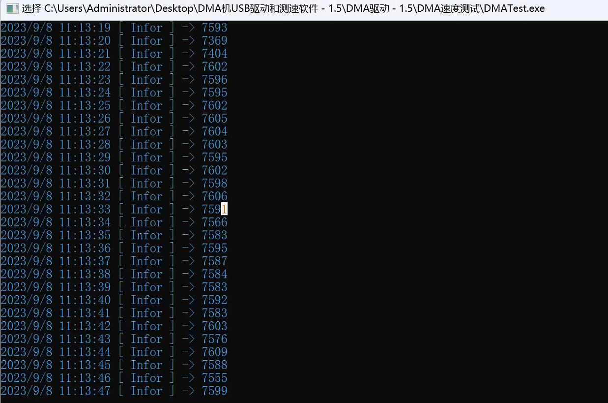 如果在测速了,说明DMA就安装成功了,如果是笔记本的话可能会低一点(笔记本性能有所闻割),如果跑分不高,请查看DMA插副机的usb口是不是USB3.0(换到蓝色的USB口),关闭软件再次测速